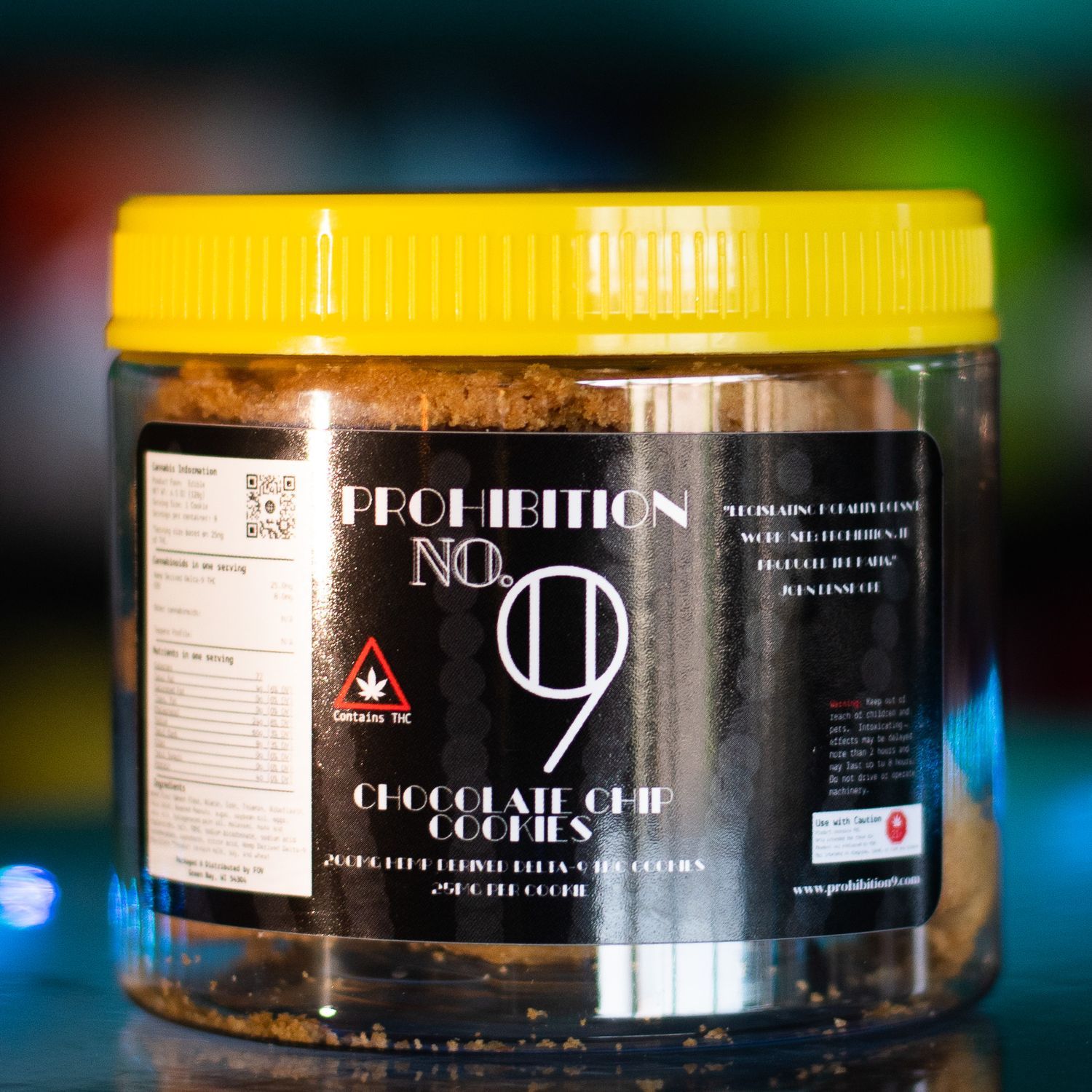 | Our Delta-9 THC Prohibition 9 Cookies are made in-house to ensure quality and consistency. Cookies start to break down as you chew and Cannabinoids will partially be absorbed sublingually providing effects early. The rest is swallowed and broken down in your stomach for a longer lasting effect; a great medium between Gummies and Chocolate. Prohibition 9 Cookies come in 200mg (25mg/Cookie) containers. (Each container contains 8 Cookies). The Hemp Derived Delta-9 THC Peanut Butter Cups abide by the "0.3% allowable Delta-9 THC on a Dry Weight basis" component to the 2018 Farm Bill. |
